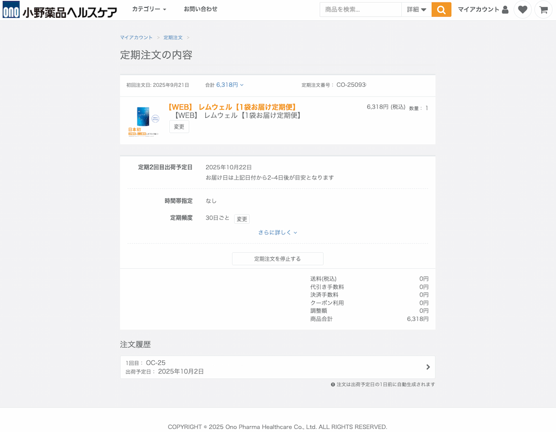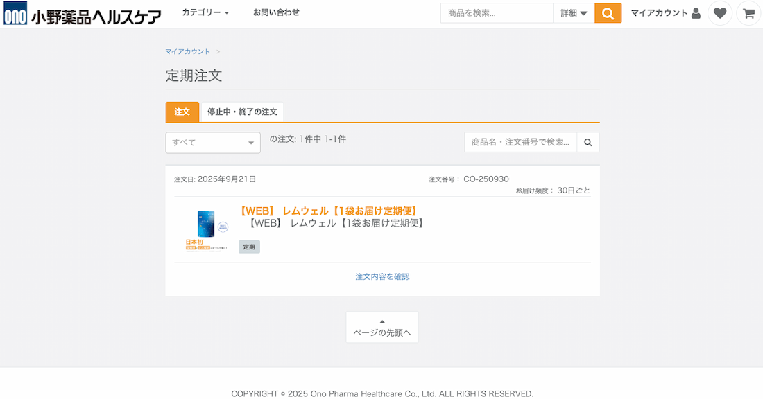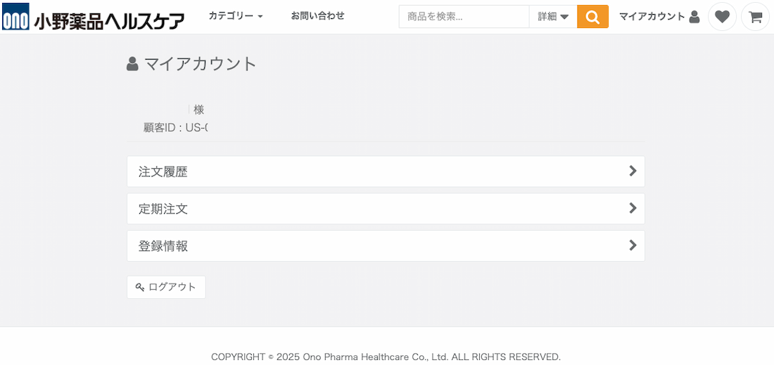 *小野薬品ヘルスケア公式オンラインショップリニュアル前の「マイページ」のこと
