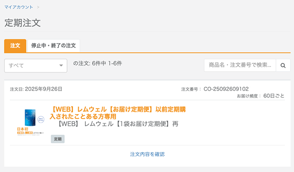 ※お電話で注文していただいたお客様へは、「定期注文自動生成完了メール」の配信はございません。