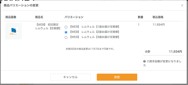 定期商品を変更いただいた方は「お届け頻度」も併せて変更が必要です。